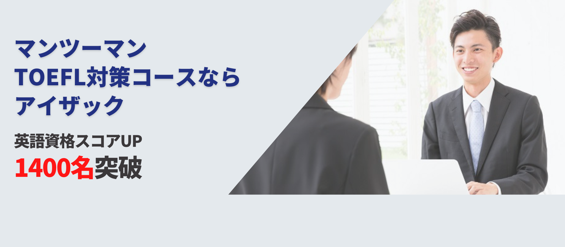 アイザックのTOEFL iBT(R)テスト対策レッスンはマンツーマンですので、いつでもスタート可能です。TOEFL iBT(R)テスト対策レッスンの予約方法は①『曜日・時間を固定しての受講』 ②『毎回予約』からお選び頂けます。TOEFL iBT(R)テスト対策上達に欠かせない継続受講をサポートするために、レッスンの日程変更にも柔軟に対応しています。